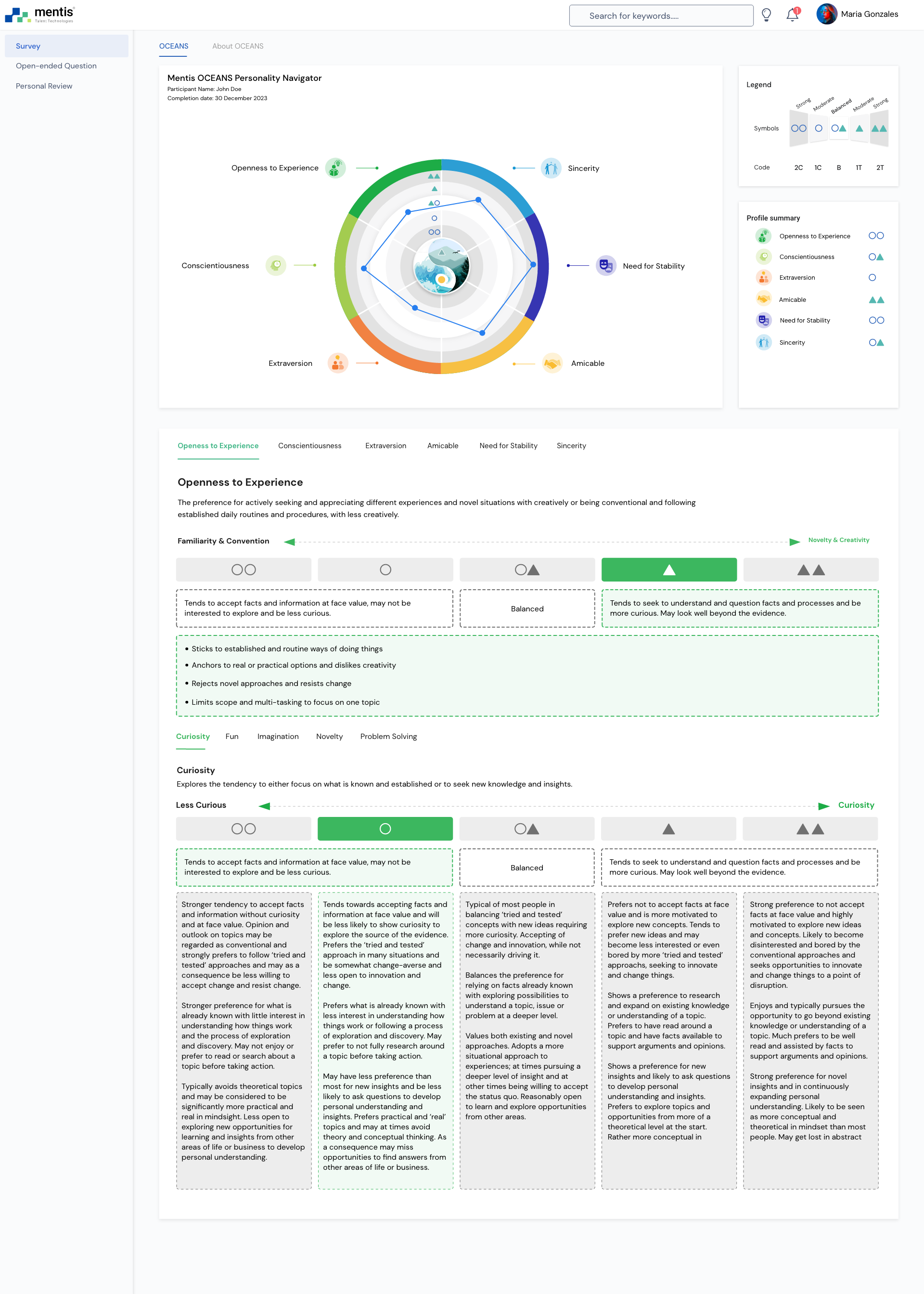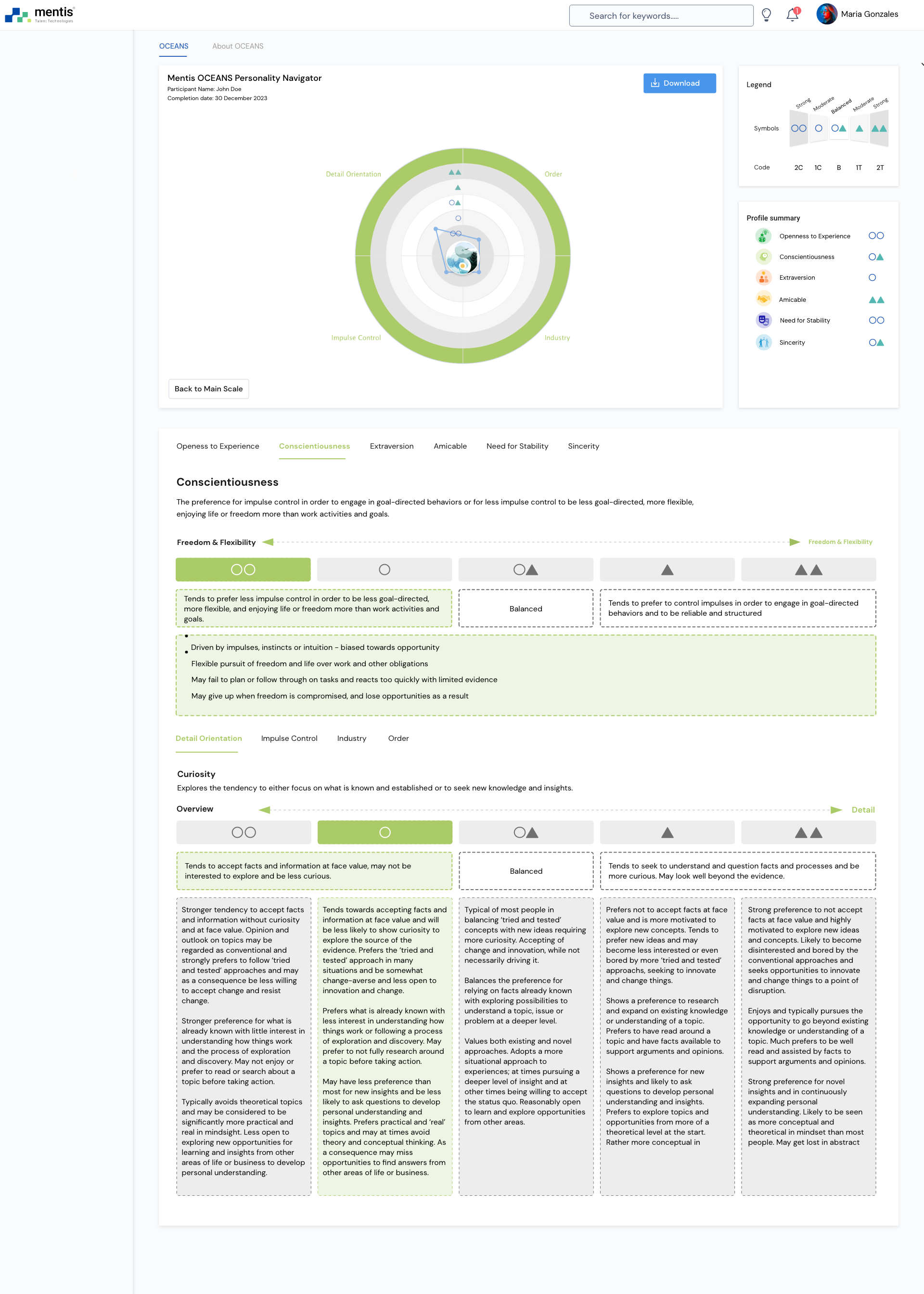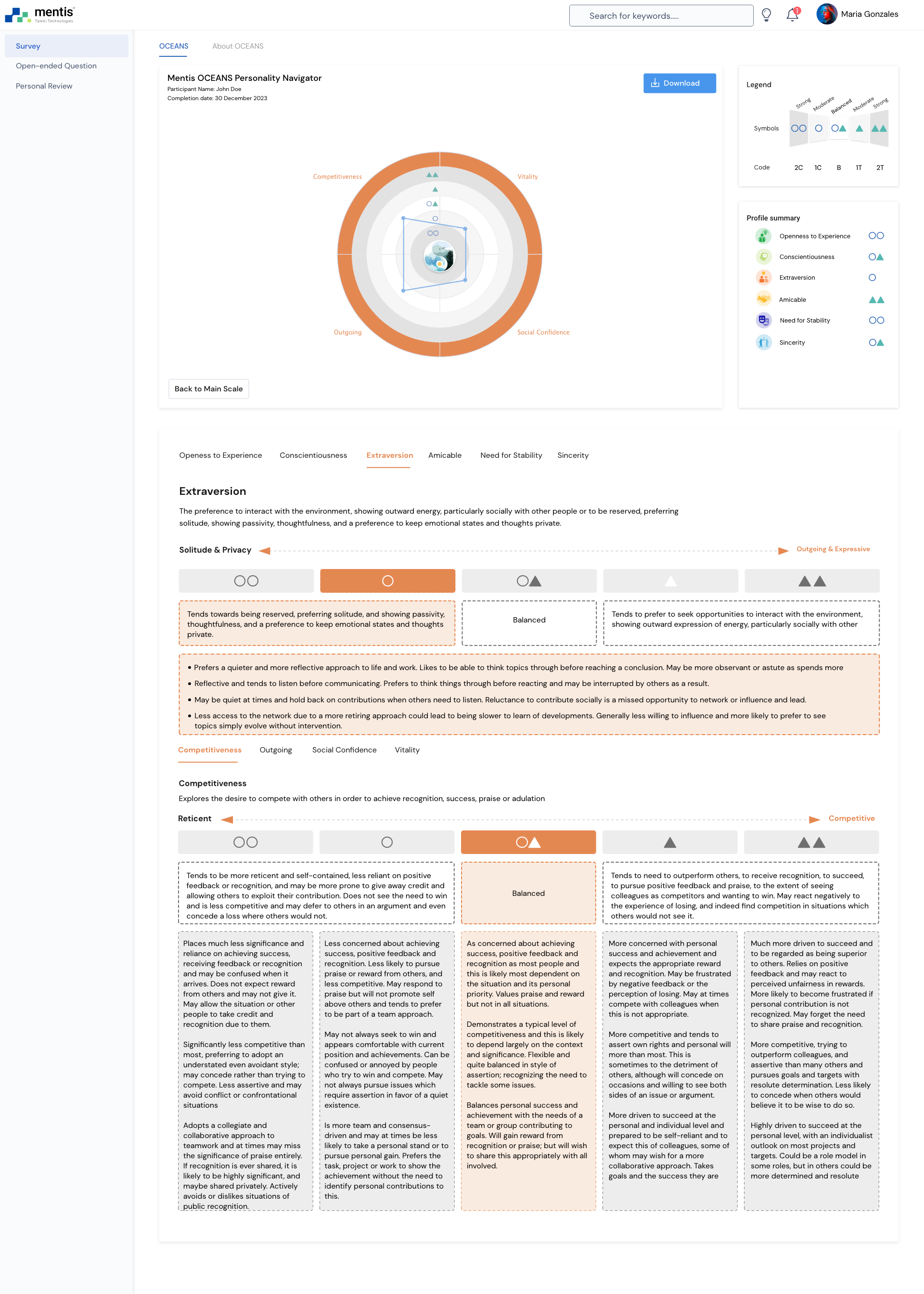 Mentis OCEANS Personality Navigator Factors and Facets