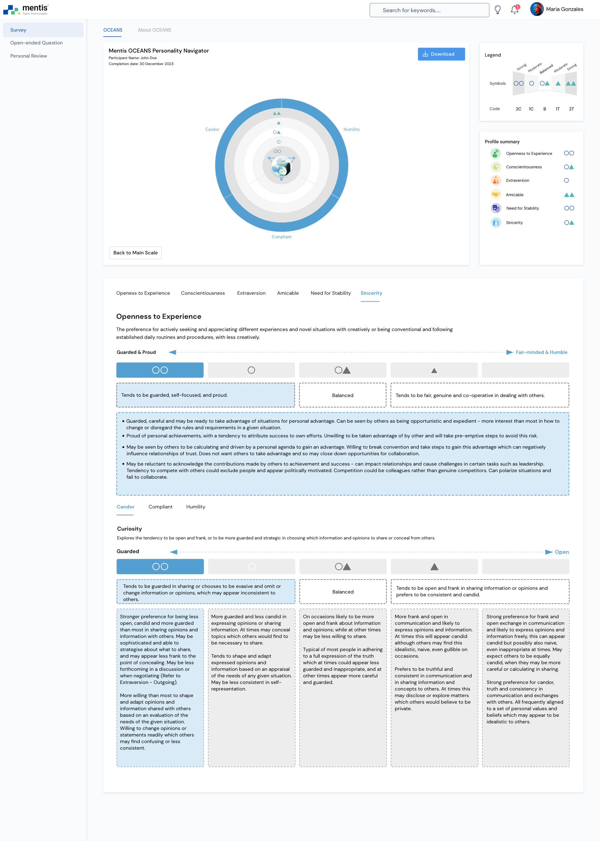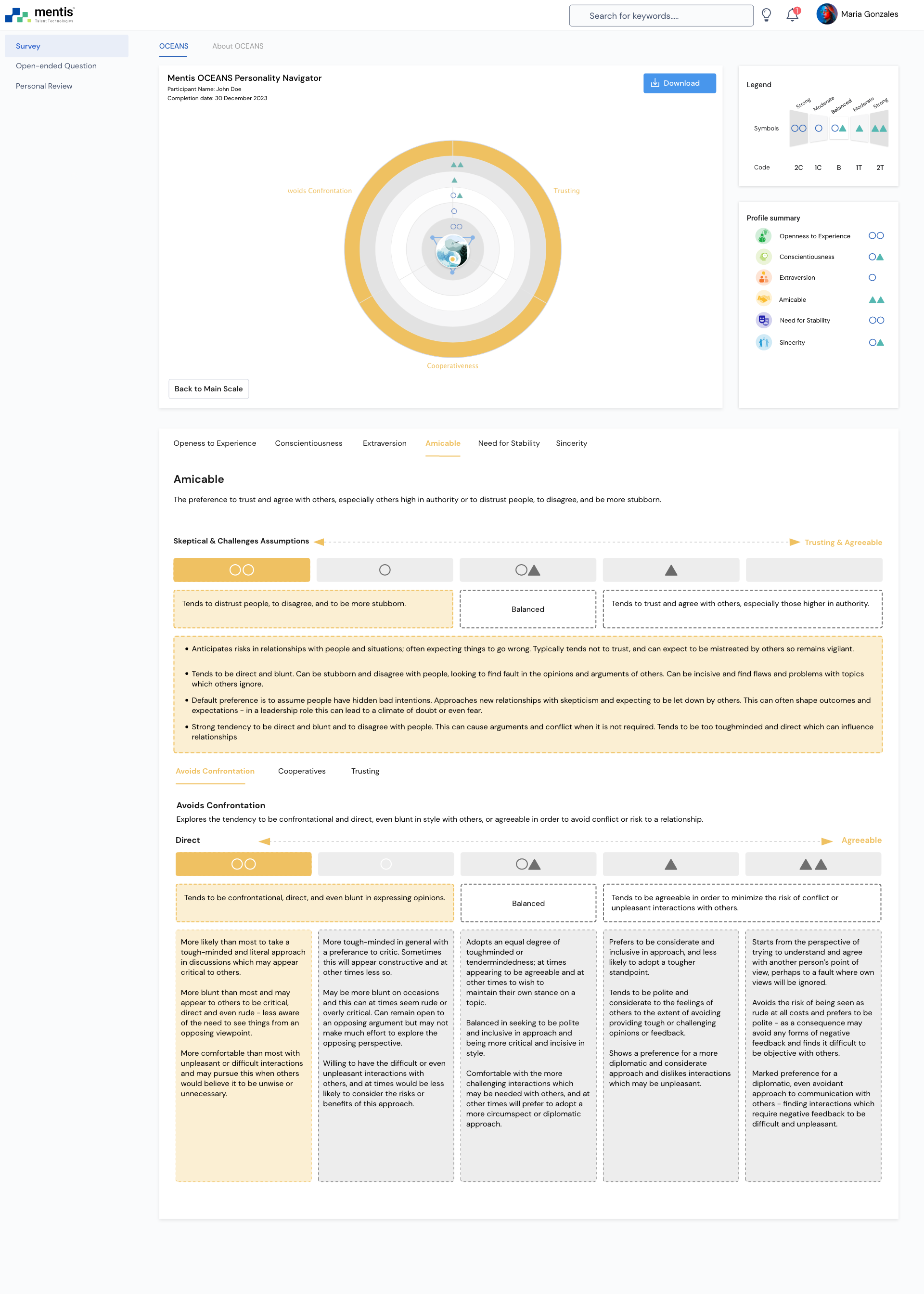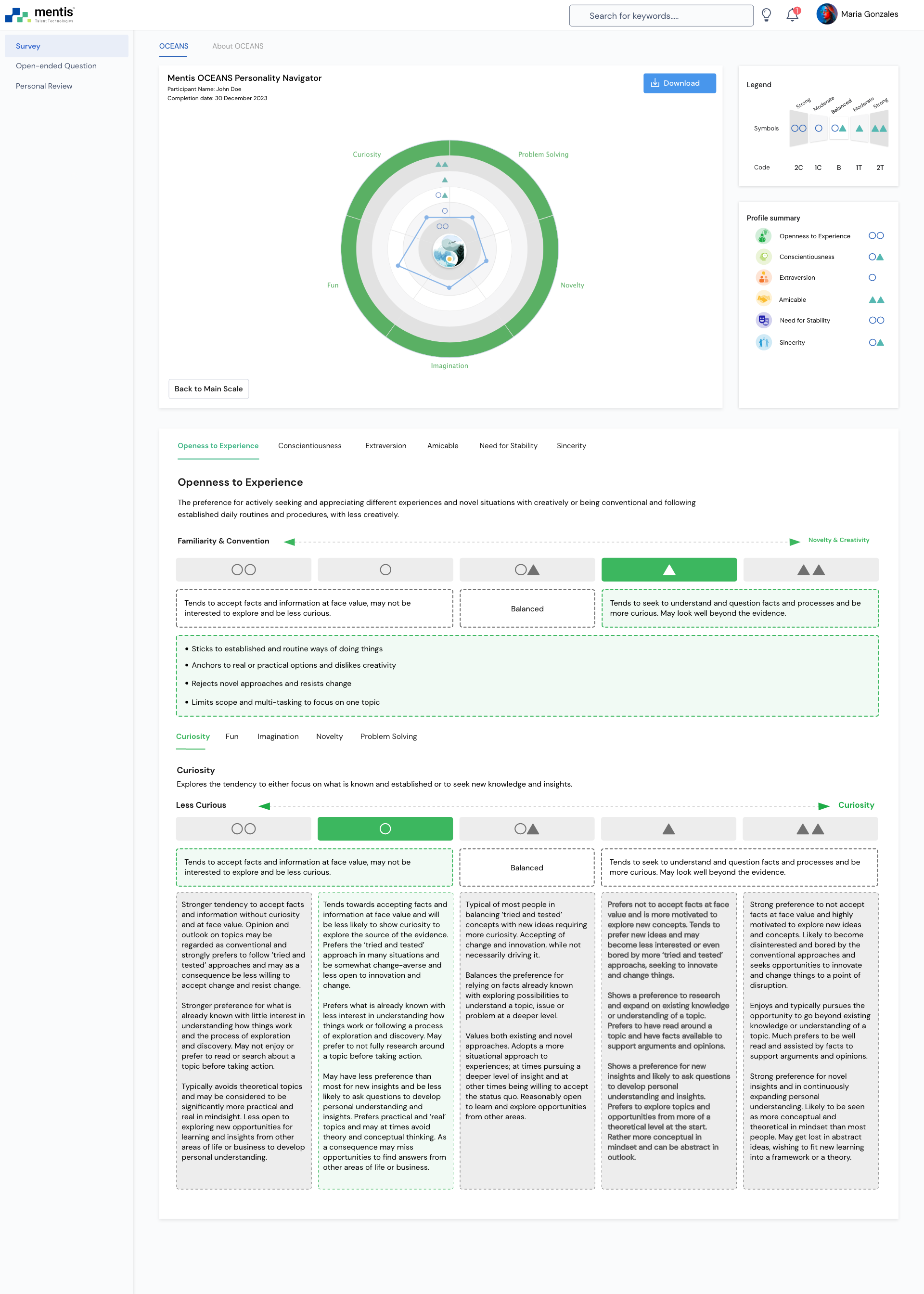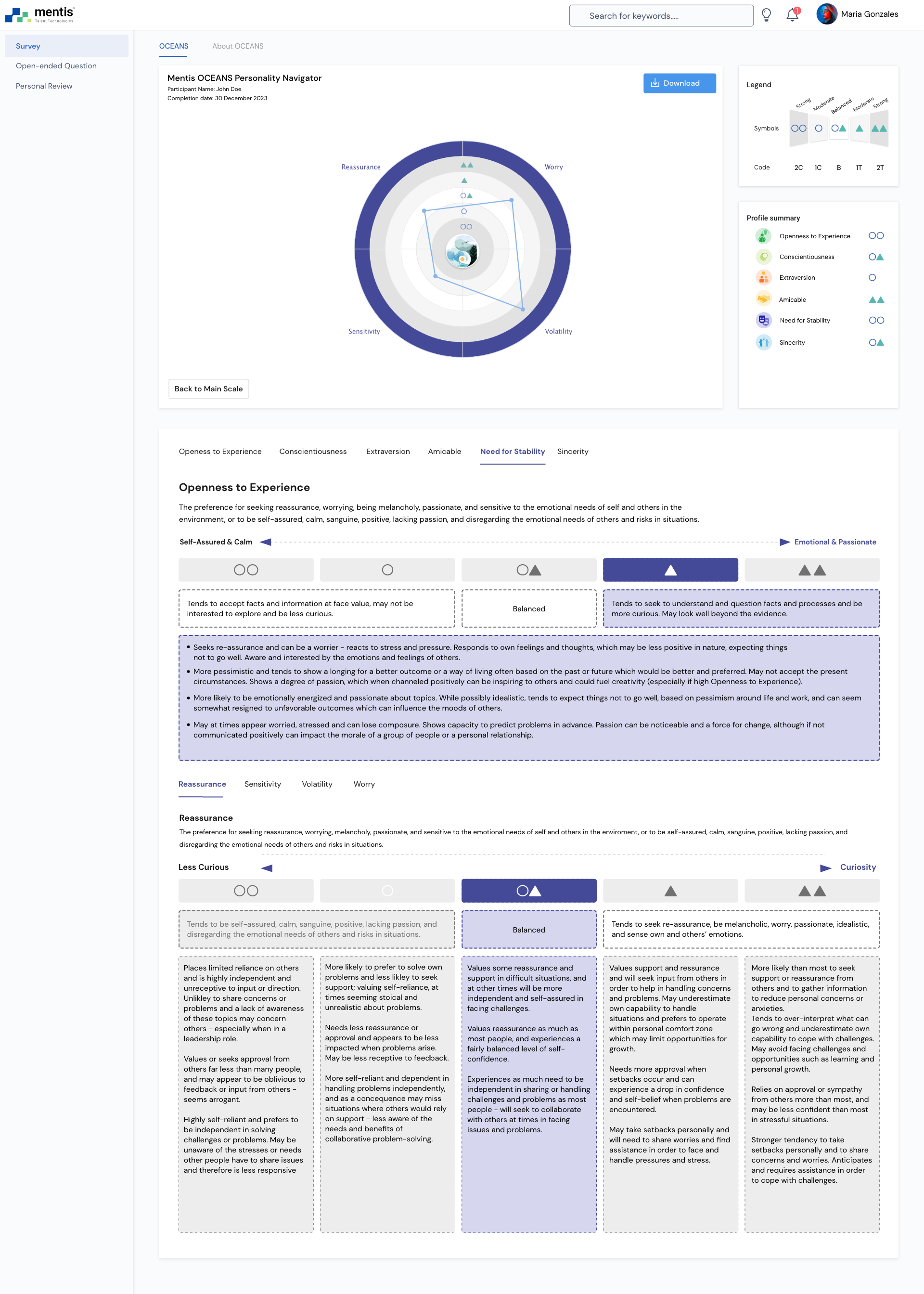 Mentis OCEANS Personality Navigator Factors and Facets