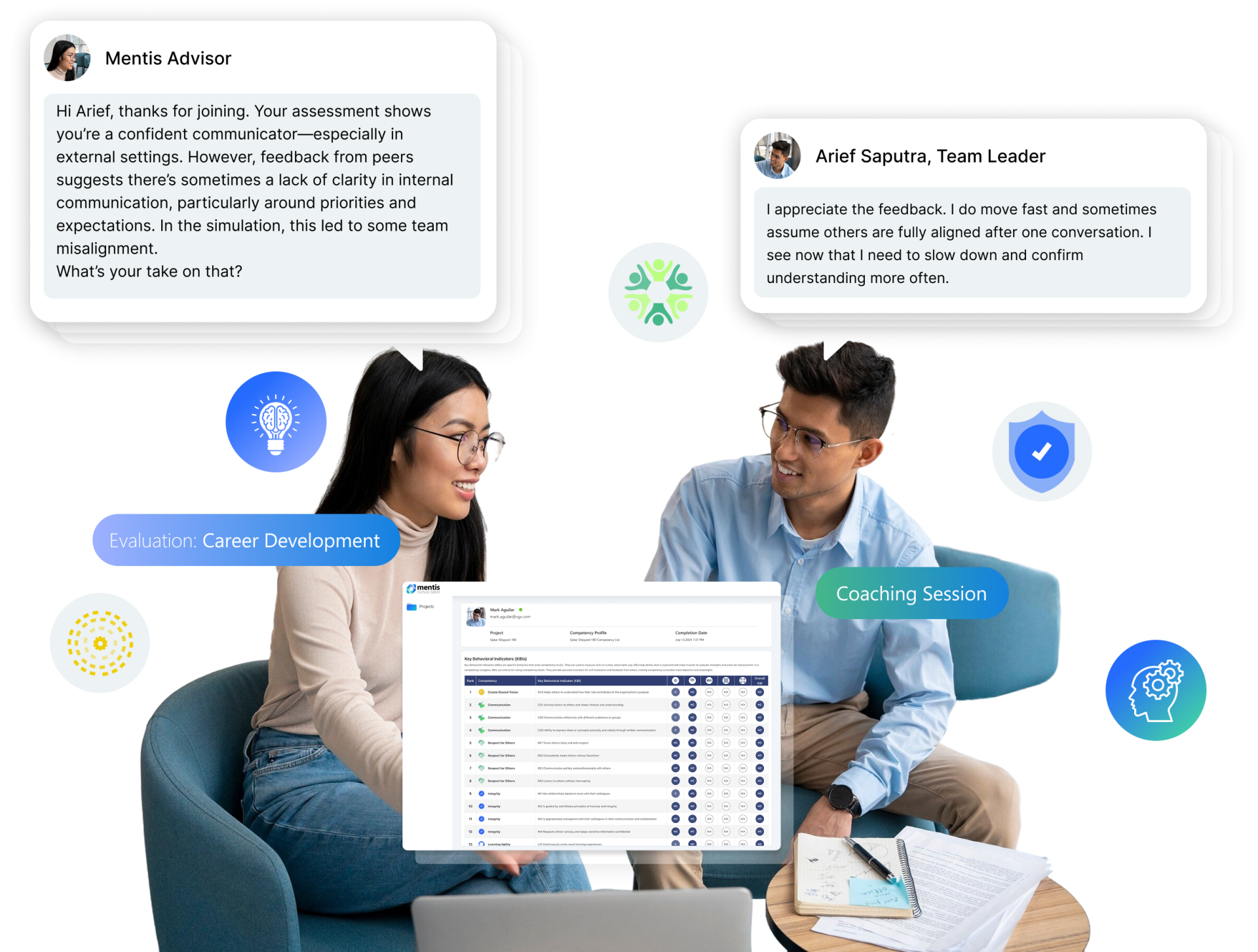 Virtual individual and team mentors provide personalized, on-demand support to help participants reflect on feedback, build targeted competencies, and stay accountable to their development goals. Delivered through digital platforms or live sessions that enhance engagement and reinforce learning.